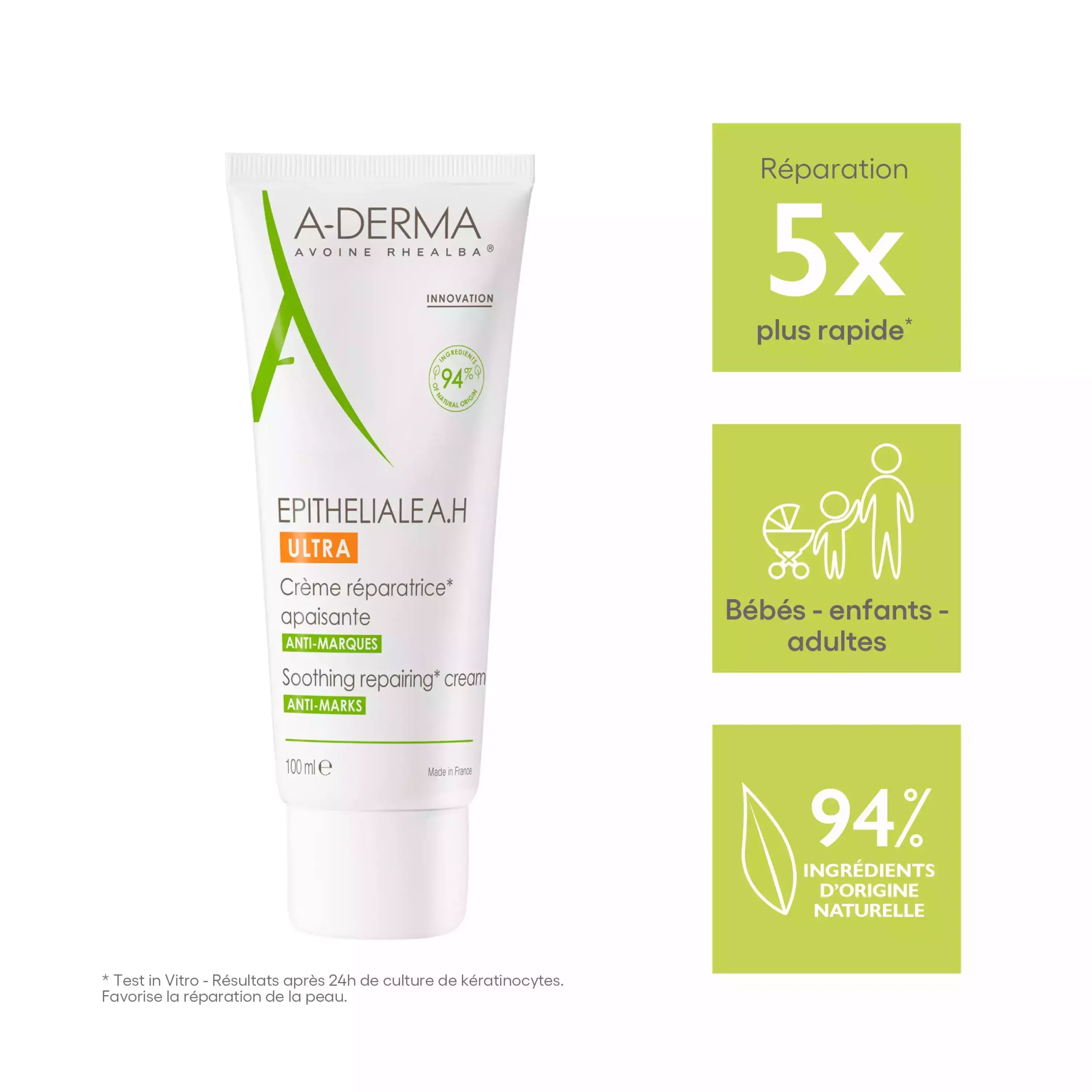 A-Derma Epitheliale A.H Ultra Crème Ulta Réparatrice est la 1re crème cicatrisante avec une double action inédite : ultra-réparatrice et anti-marques.