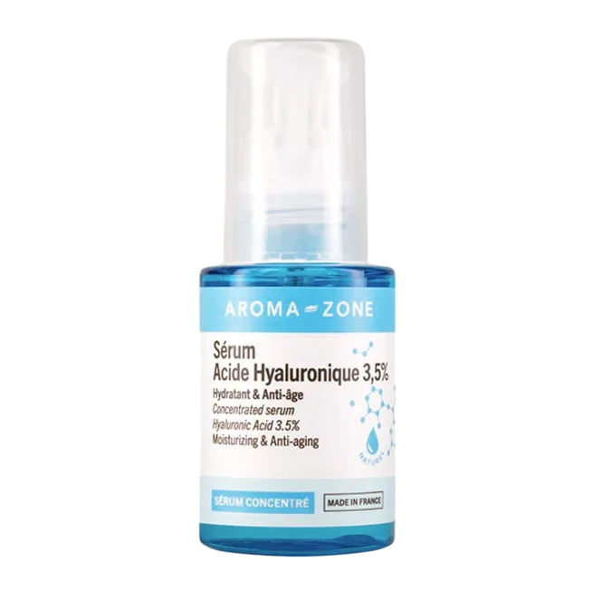 Le sérum d’acide hyaluronique d’Aroma Zone est 100 % d’origine naturelle est l’un des plus concentrés du marché : 3.5 % contre 0.1 à 1% d’acide hyaluronique dans les cosmétiques classiques.