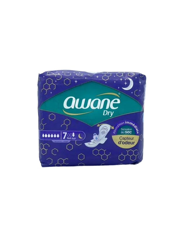 Awane Dry Serviettes Hygiéniques Nuit Longues Capteur D’Odeur 7 Unités