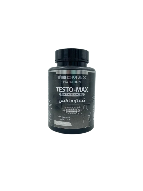 Biomax Nutrition Testo-Max Tongkat Ali 1000 mg – 60 Capsules est un complément alimentaire naturel formulé pour soutenir la vitalité masculine, l’énergie physique et la performance globale. Enrichi en extrait concentré de Tongkat Ali (Eurycoma longifolia), reconnu pour son effet stimulant sur la production naturelle de testostérone, il aide à améliorer la force musculaire, l’endurance et la libido.
