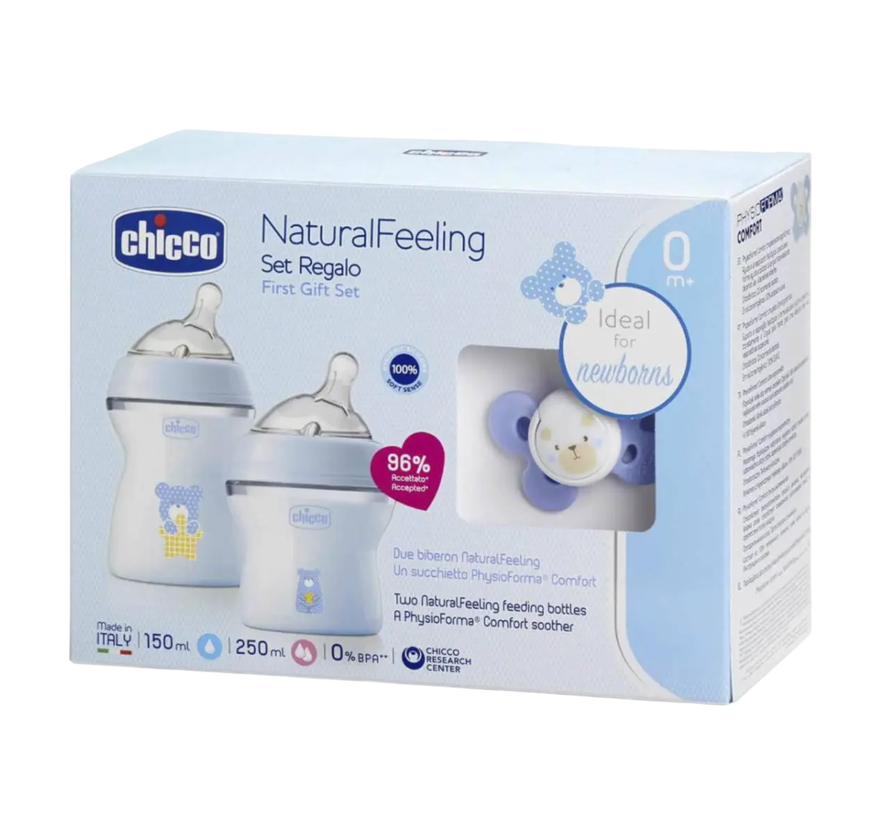 Chicco Set 2 Biberons + Sucette Natural Feeling Nouveaux Nés