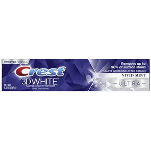 Le Crest 3D White Vivid Mint Ultra est un dentifrice innovant conçu pour offrir une blancheur éclatante et une haleine fraîche durable. Sa formule nettoie efficacement la surface des dents tout en éliminant les taches, pour révéler un sourire plus lumineux jour après jour. Grâce à son parfum menthe vive ultra-fraîche, il procure une sensation immédiate de propreté et de fraîcheur.