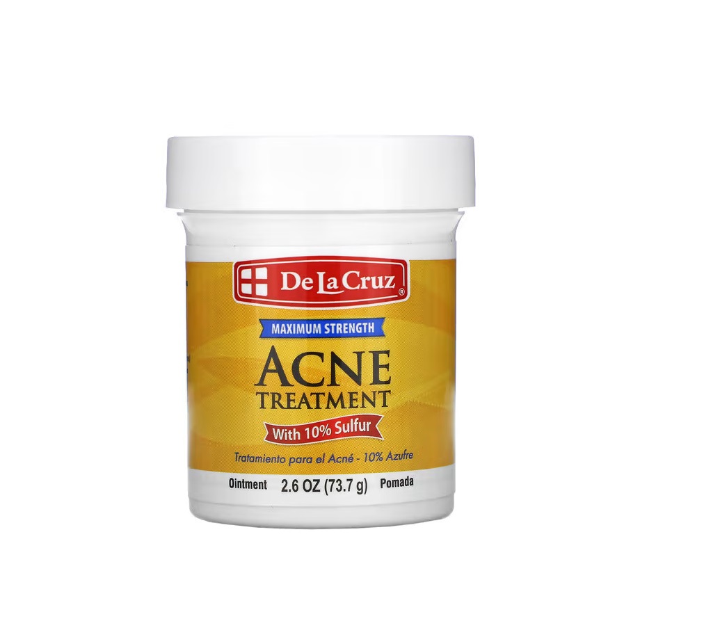 La pommade a 10% de Soufre De La Cruz pénètre les pores tout en asséchant et en éliminant les boutons d’acné et les points noirs.