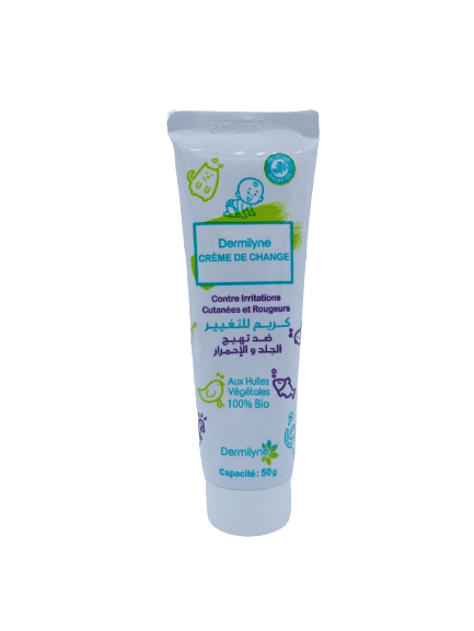La Dermilyne Crème de change pour bébé prévient et apaise les rougeurs et les irritations qui peuvent apparaître sur les fesses de bébé.