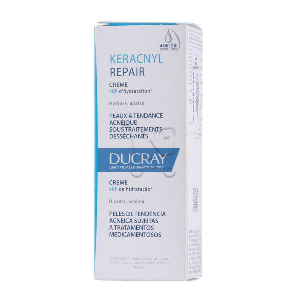 Keracnyl Repair de Ducray est un soin compensateur, hydratant ,nutritif et apaisant, destinée aux peaux à tendance acnéique sous traitement dermatologique asséchant (Comme le gel topique Adapalene , le traitement oral Curacné..)