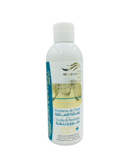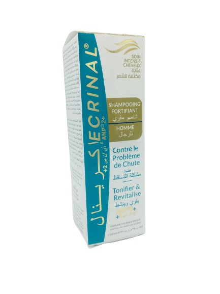 Le Shampooing fortifiant Homme de Ecrinal à l’ANP 2+ nettoie en douceur les cheveux sans irriter le cuir chevelu. Il exerce une action stimulante sur la racine et fortifie le cheveu.
