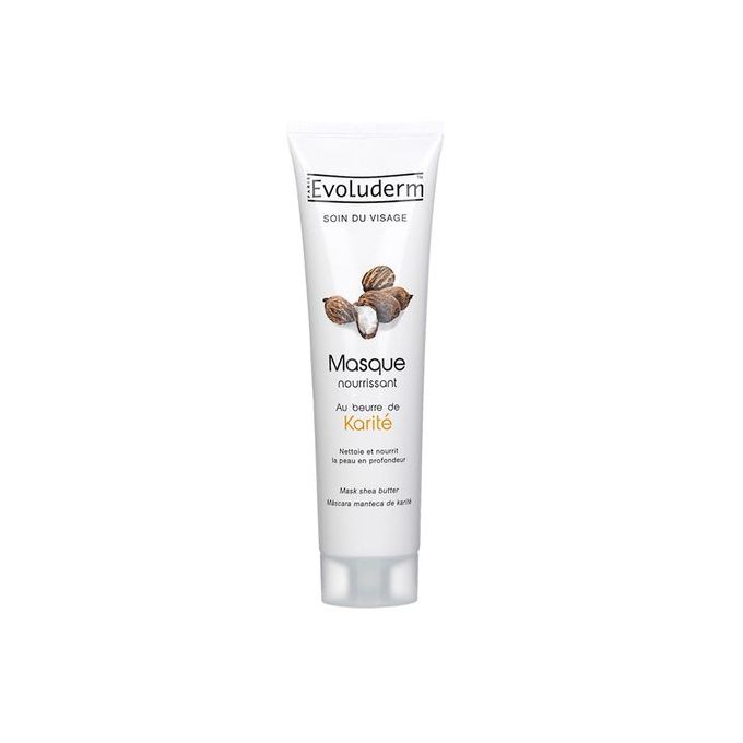 Le masque nourrissant Evoluderm au beurre de karité revitalise et libère l’épiderme de ses impuretés.