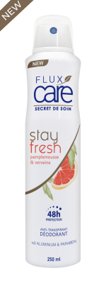Découvrez le nouveau déodorant anti-transpirant Stay Fresh au Pamplemousse et Verveine de Flux Care.