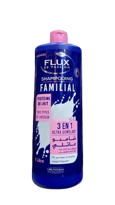 Le Flux Shampooing Familial 3 en 1 Protection & Ultra Démêlant Flux, infusé de protéine de lait, révolutionne votre routine capillaire. Adapté à tous types de cheveux, cette formule polyvalente offre une protection globale et démêle efficacement, simplifiant le quotidien de toute la famille.