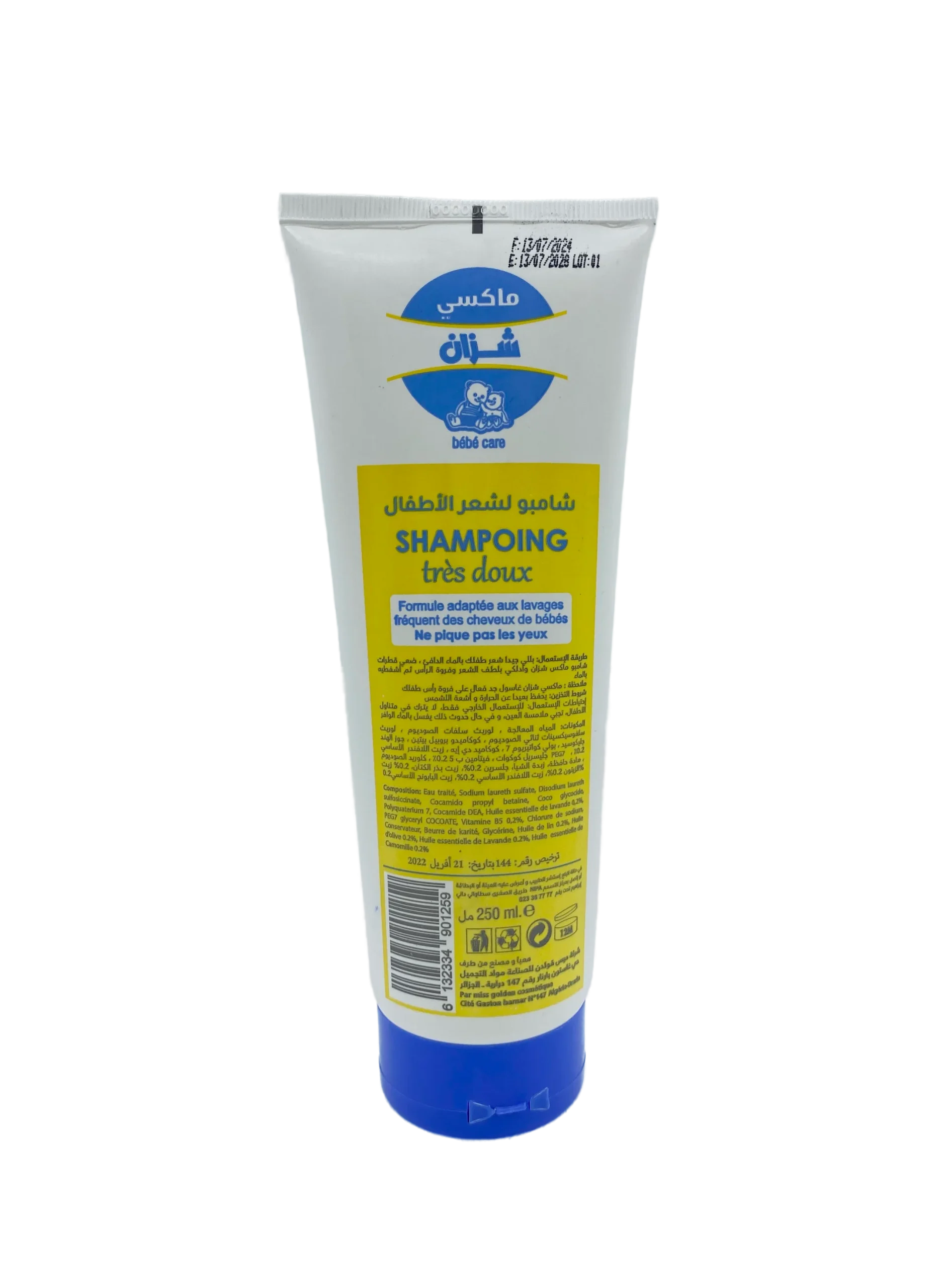 - Appliquer une petite quantité sur les cheveux mouillés de bébé, masser délicatement, puis rincer abondamment.