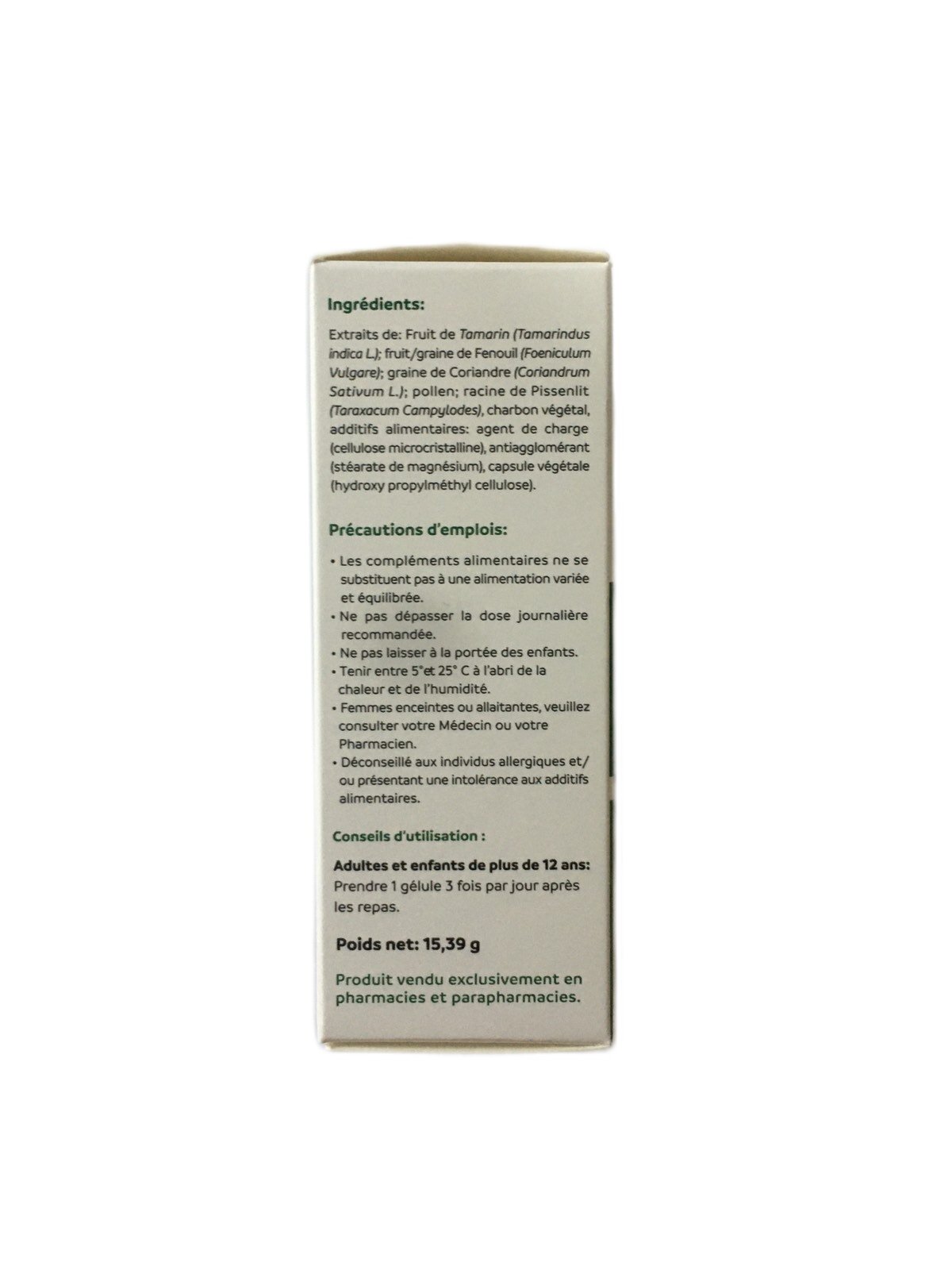 Complément alimentaire pour les problèmes de ballonnements et gaz intestinaux a base d’extraits de plantes : Tamarin , fenouil , coriandre , pollen et pissenlit ,chardon végétal .