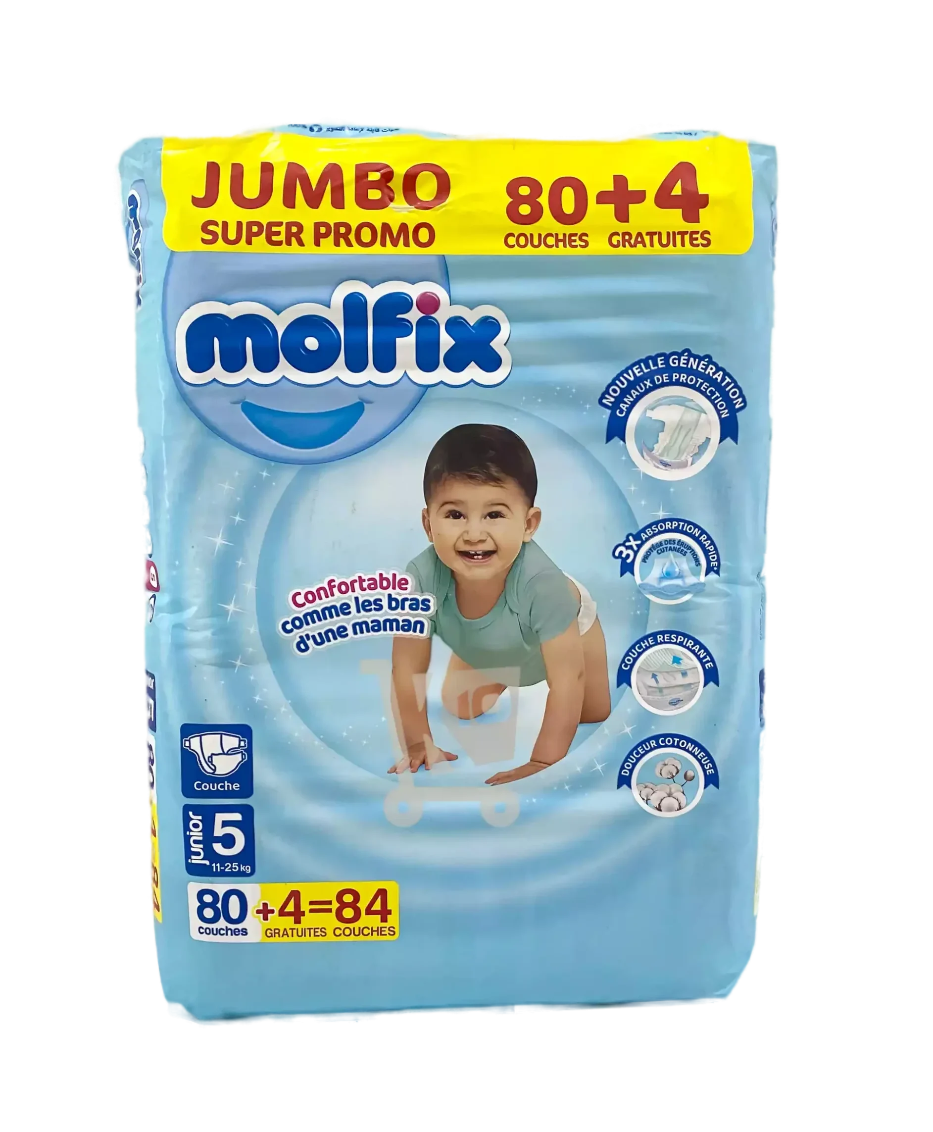 Molfix Couches Bébé Taille 5 Junior (80 Pièces + 4 GRATUITES)
