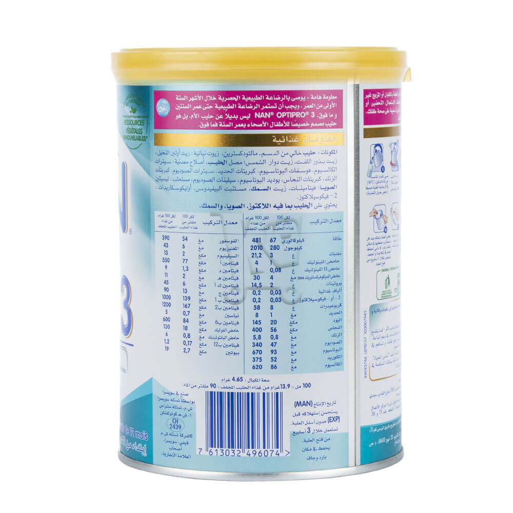 Votre enfant grandit mais a toujours des besoins nutritionnels spécifiques , le lait de croissance NAN Optipro 3 est parfaitement adapté aux besoins de votre enfant dès ses 1 an.