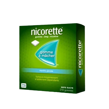 Boîte de 210 gommes à mâcher (2 mg de nicotine chacune).