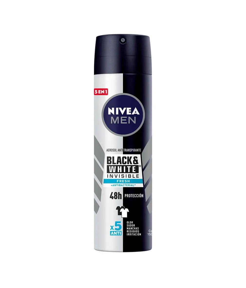 L’Anti-Transpirant Nivea Men Black & White Fresh déodorant offre différents types de protection contre les odeurs, les impuretés, les irritations, la transpiration et les taches sur les vêtements pour un rafraîchissement supplémentaire.