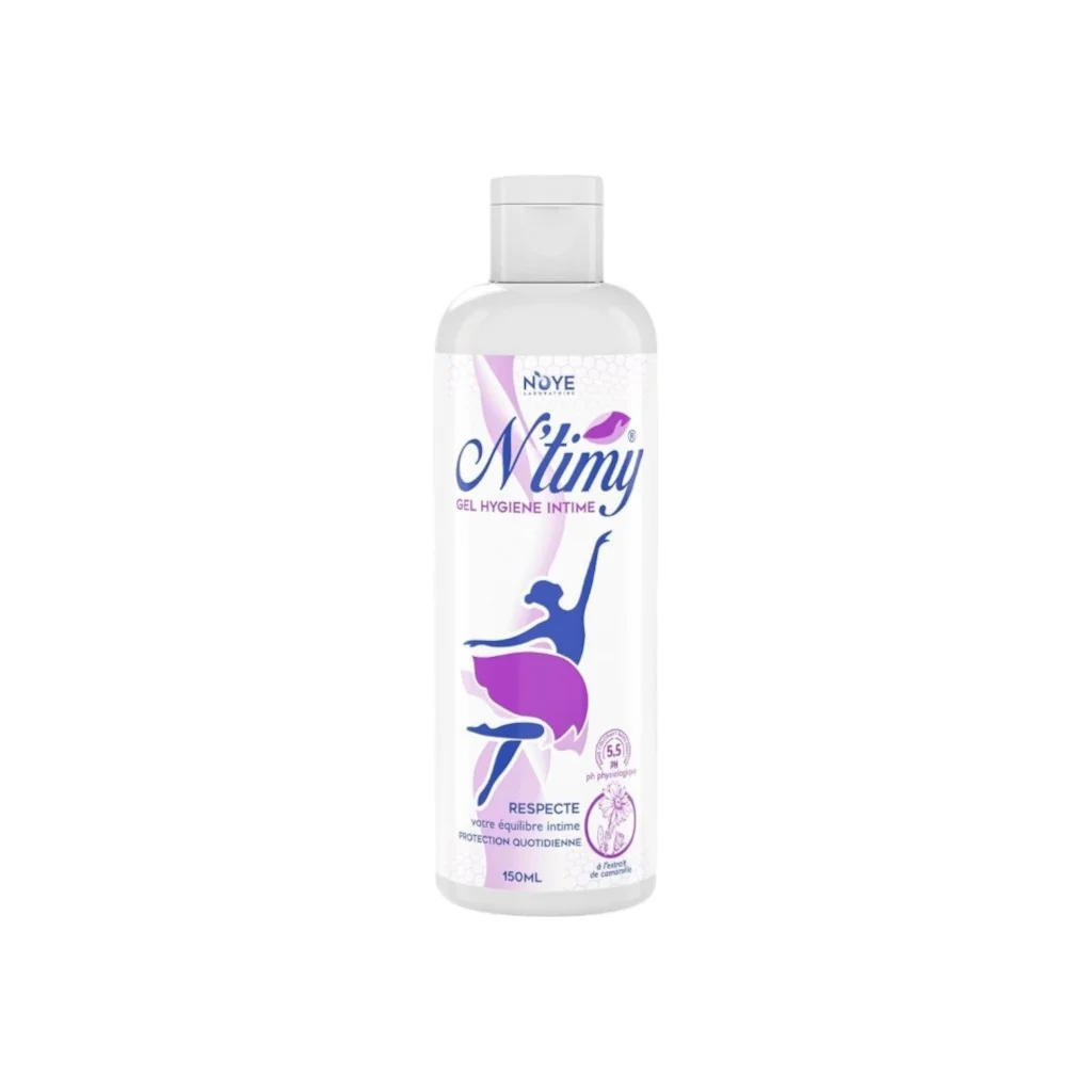 Noye N’timy Gel Hygiène Intime pH 5,5 est un gel doux pour la toilette quotidienne de la zone intime externe. À base de camomille, il nettoie sans irriter, hydrate et respecte l’équilibre naturel du pH vaginal. Idéal pour garder une sensation de fraîcheur et de confort, même en cas de peau sensible.