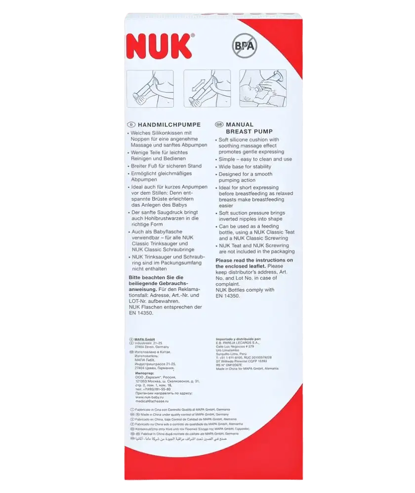 Caractéristiques du NUK Tire-Lait Manuel Soft & Easy