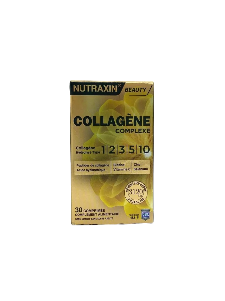 Le Nutraxin Complexe Collagène est un complément alimentaire premium conçu pour soutenir la beauté de la peau, la santé des articulations, ainsi que le bien-être général des tissus conjonctifs. Grâce à sa formule avancée combinant 5 types de collagène (I, II, III, V, X) et des actifs hautement bénéfiques comme l’acide hyaluronique, la vitamine C, le zinc, le sélénium et la biotine, ce complexe offre un soutien complet pour la fermeté, l’élasticité et la régénération des tissus.