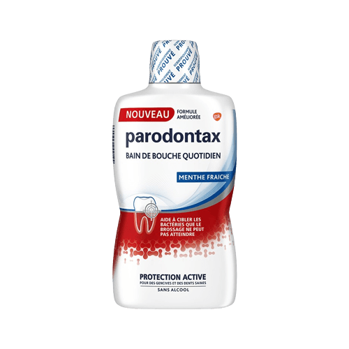 - Le Bain de Bouche Parodontax peut s’utiliser quotidiennement pour assainir intensément les dents et les gencives et offrir une haleine fraîche longue durée.