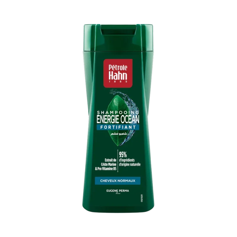Pétrole Hahn Shampooing Fortifiant Cheveux Normaux, enrichi en Extrait de Criste Marine et Pro Vitamine B5, formulé pour donner force et vitalité aux cheveux.