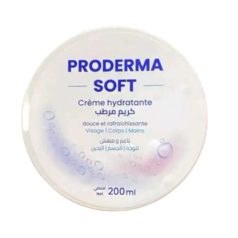 Proderma Soft Crème Hydratante – 200 ml est une crème polyvalente à la texture légère et veloutée, conçue pour hydrater et adoucir la peau du visage, du corps et des mains. Enrichie en agents émollients et rafraîchissants, elle procure une sensation immédiate de confort tout en laissant la peau souple et délicatement parfumée.