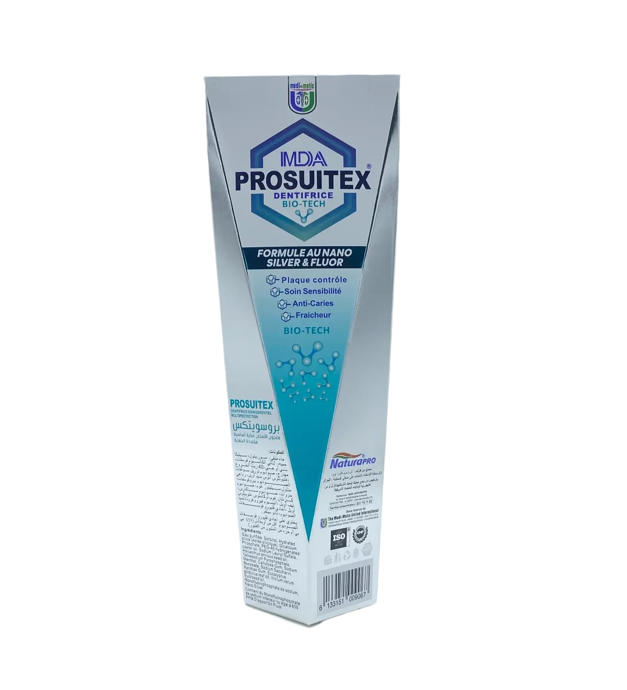 Prosuitex Dentifrice Anti-Cavity Au Fluor est un dentifrice offrant une protection intensive contre les caries grâce à sa formule enrichie en Nano Silver et en fluor.