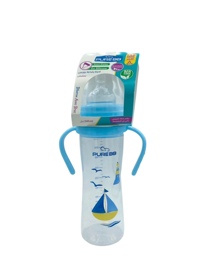 Pure BB Biberon Avec Bras Anti-Coliques Tétine Silicone +18 M 240 ml