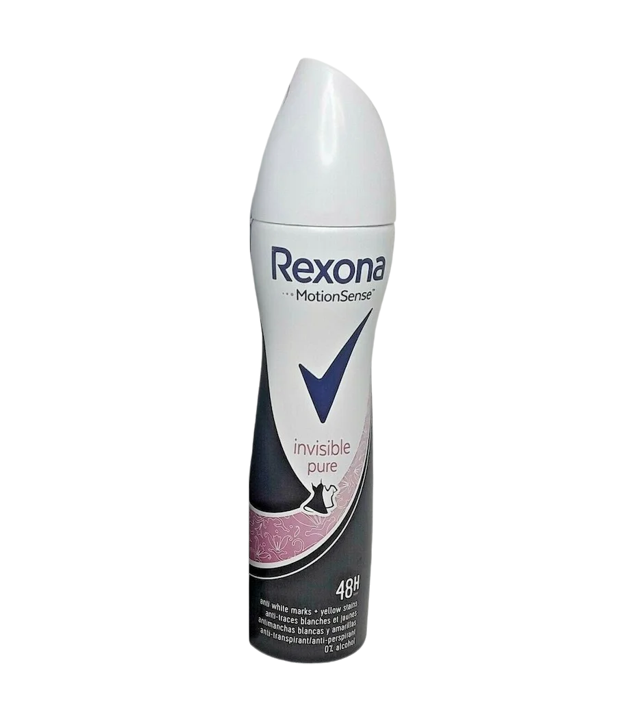 Le déodorant spray Anti-Transpirant Invisible Pure de Rexona vous protège jusqu’à 48 heures contre la transpiration et les odeurs corporelles. Il protège vos vêtements contre les résidus blancs et les taches jaunes. Donc pour les vêtements: le blanc reste blanc, le noir reste noir