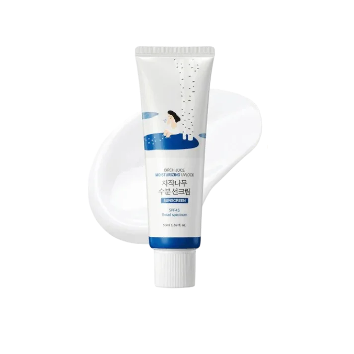 Le Round Lab Birch Juice Moisturizing Sun Cream est un écran solaire coréen « double fonction »: il offre une protection UV très élevée (SPF 50+ PA++++) tout en hydratant intensément la peau grâce à sa formule à base de sève de bouleau (1 425 ppm), riche en minéraux, protéines et enzymes. Sa texture gel‑crème légère fond instantanément, sans laisser de traces blanches ni film gras, parfaite pour un usage quotidien comme base de maquillage.