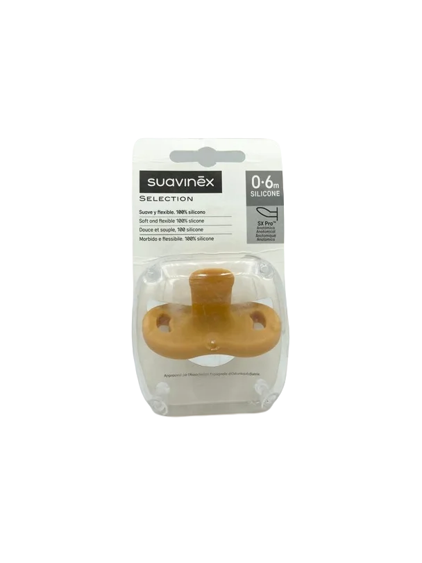 La sucette Suavinex « Selection » en silicone de teinte beige, avec tétine de type anatomique SX Pro, est conçue pour les nourrissons de 0 à 6 mois. Elle privilégie un design pensé pour le confort et la sécurité : tétine en silicone de qualité, forme anatomique qui respecte l’anatomie buccale du bébé, et bouclier ventilé pour laisser circuler l’air. Cette sucette fait partie de la gamme premium de Suavinex, qui propose des modèles adaptés à chaque étape de la croissance.