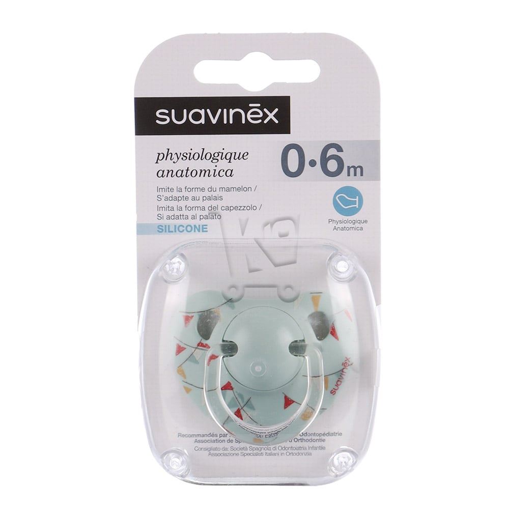 Sucette physiologique silicone 0-6m guirlande verte SUAVINEX s’adaptent très bien à la bouche de bébé , prévient l’ irritation de la peau en minimisant le contact avec la peau de votre bébé.