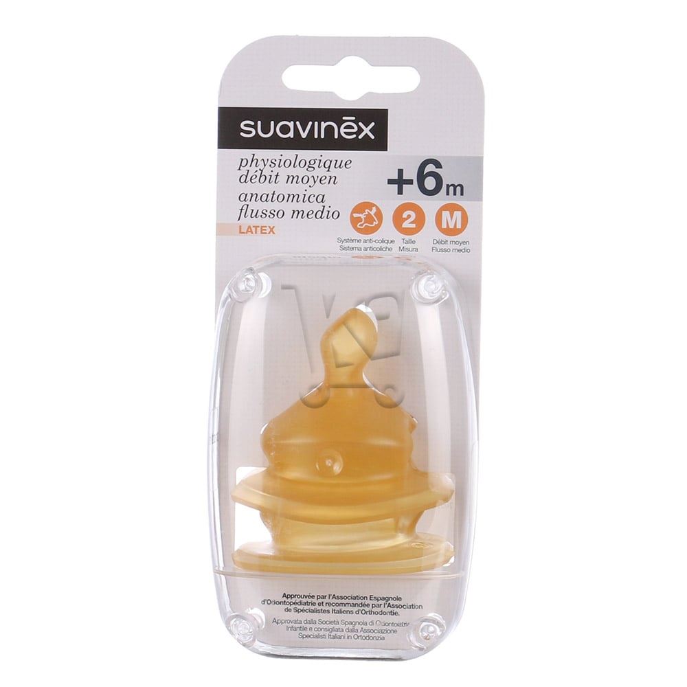 Suavinex Tetine Latex Physiologique Flux Moyen +6M 2Pcs