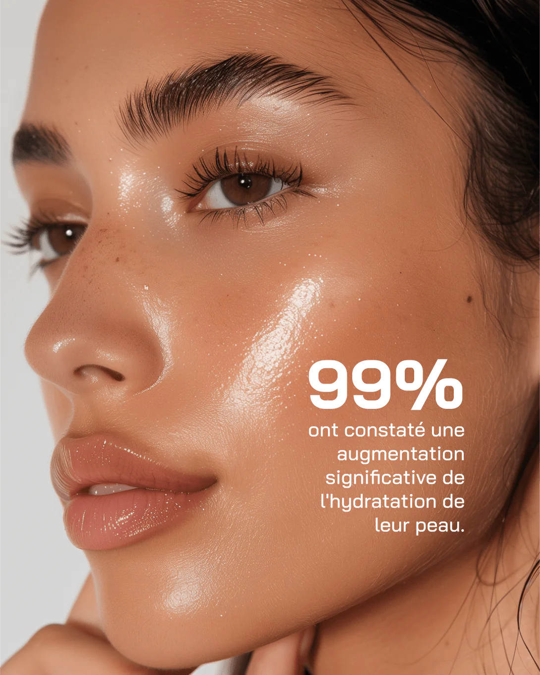 - Hydratation continue : L’acide hyaluronique à bas poids moléculaire pénètre en profondeur pour maintenir une hydratation durable tout au long de la journée.