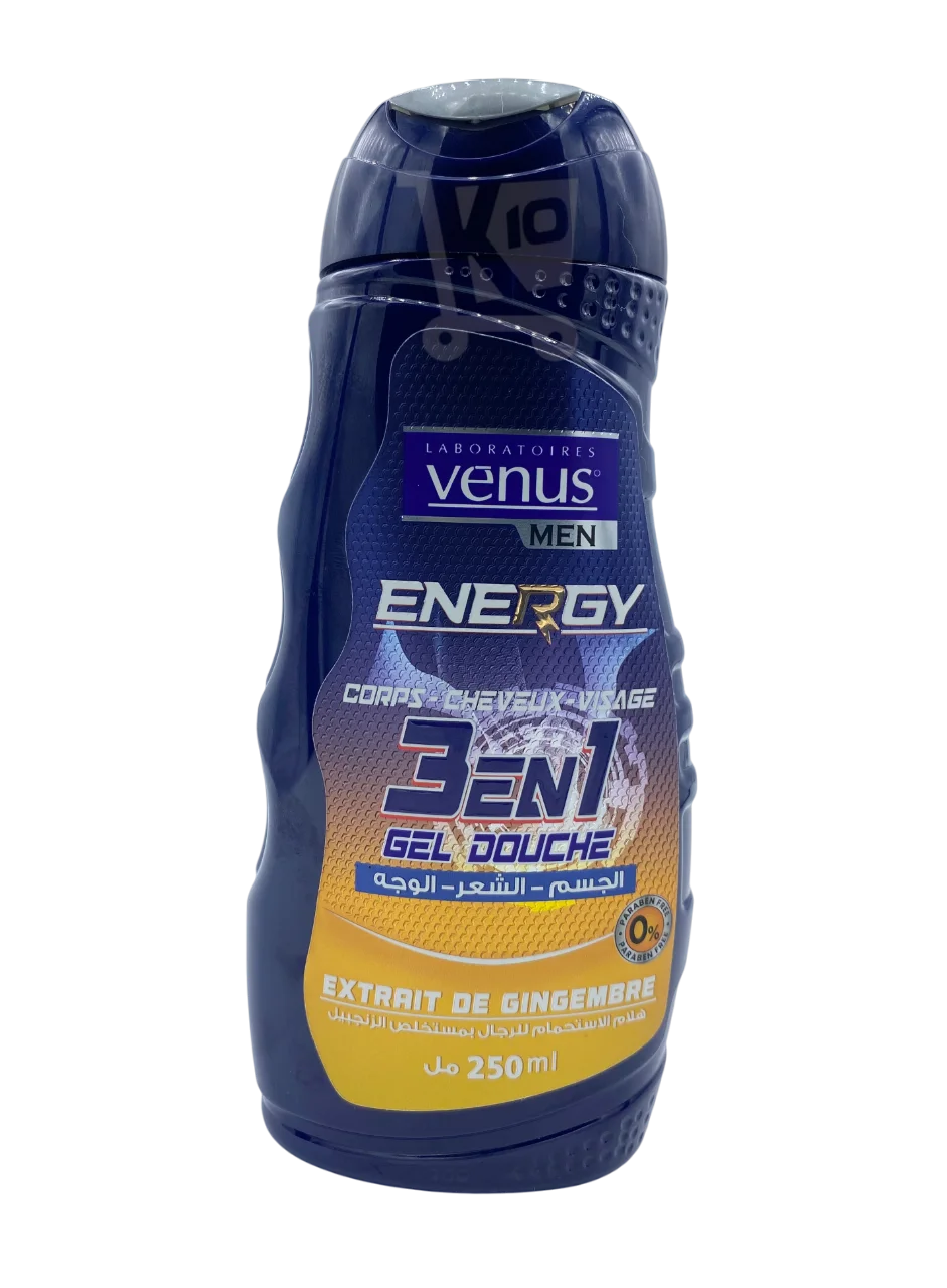 Le Venus Energy Gel Douche 3en1 Gingembre est conçu pour les hommes, offrant un soin complet pour le corps, les cheveux et le visage.