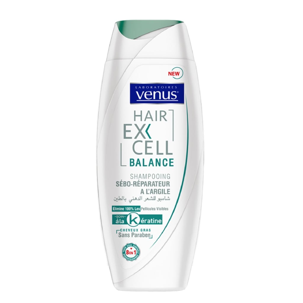 Dites stop aux cheveux gras ! Grâce au nouveau shampooing sébo-régulateur HairExCell Balance formulé à l’argile verte et l’argile blanche (Kaolin) et du zinc pyrithione donnant un complexe sébo-régulateur spécialement développé pour rééquilibrer la sécrétion du sébum.