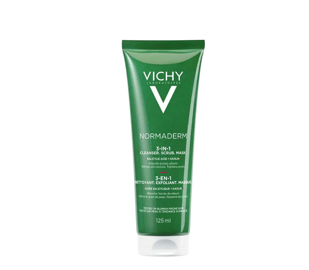 Vichy Normaderm 3-En-1 Nettoyant Exfoliant Masque Acide Salicylique & Kaolin 125 ml